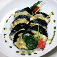 Yengeç etli siyah ravyoli artık hazır, afiyet olsun.